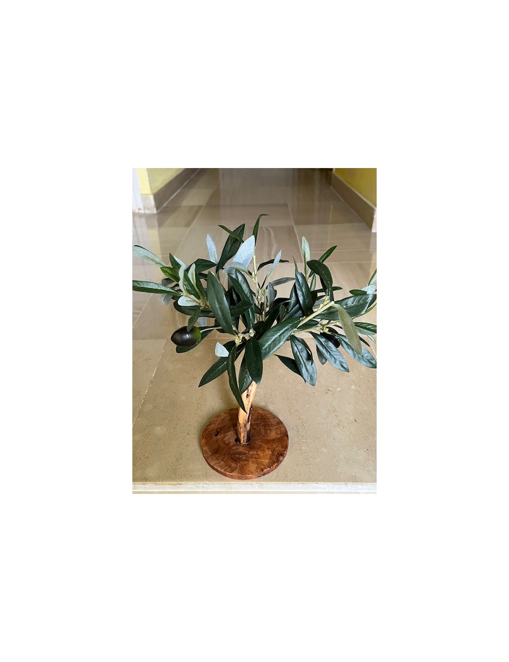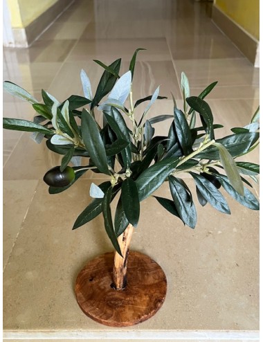 Mini olivier de Nice semi naturel fait ici avec bois d'olivier socle en bois d'olivier feuilles artificielles